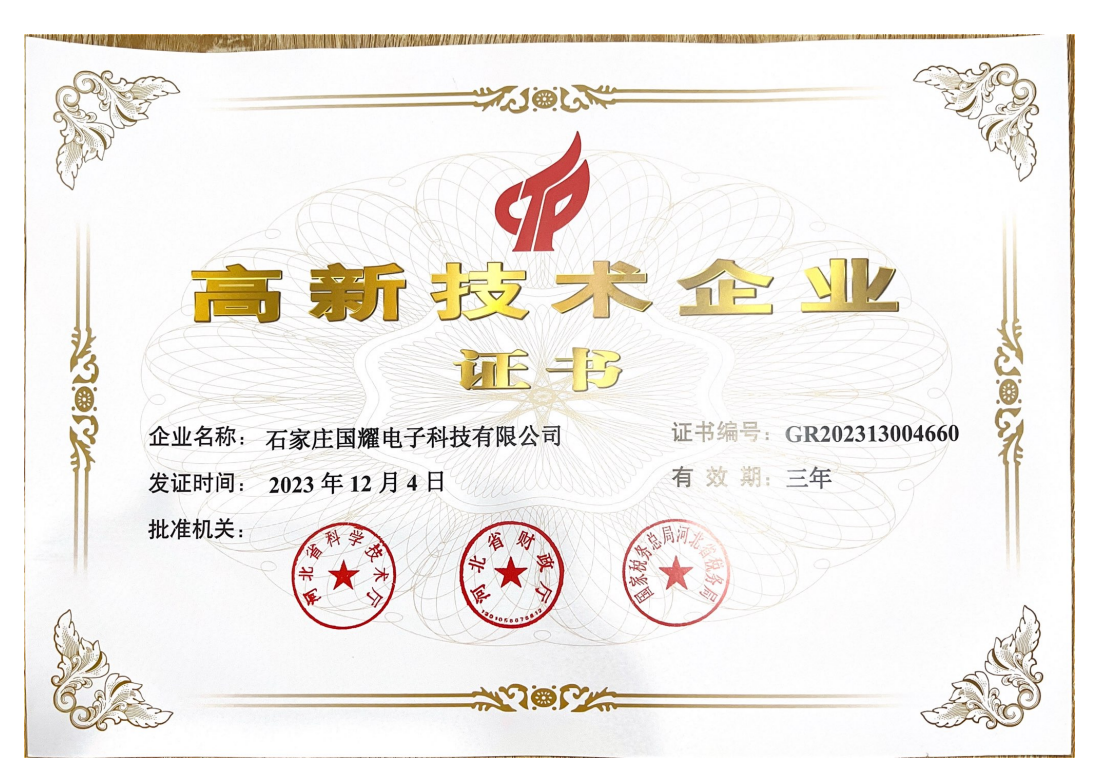 石家莊國(guó)耀電子科技有限公司成立于1998年,注冊(cè)資本1000萬(wàn)元,位于石家莊市高新技術(shù)產(chǎn)業(yè)開發(fā)區(qū),是國(guó)家高新技術(shù)企業(yè)和軟件企業(yè)。
